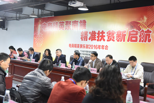 2016年12月1日,广东省对外贸易职业技术学校校长兼党委书记刘从兵及其校领导班子、广东省南雄市统战部部长林军、广东省教育厅扶贫组组长王春涛、以及电子商务精英俱乐部的各电商企业优秀人才齐聚南雄市电子商务公共服务中心的会议大厅,召开了南雄市黄坑镇黄坑村扶贫项目会议;本次2016年电子商务精英俱乐部年会也在随后召开,众多电商领军人士分享了农村电商发展的新思路,会议现场气氛活跃。