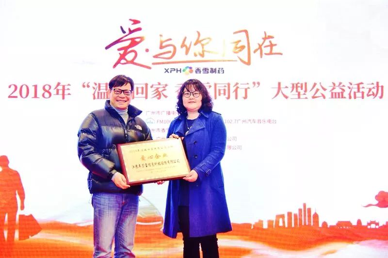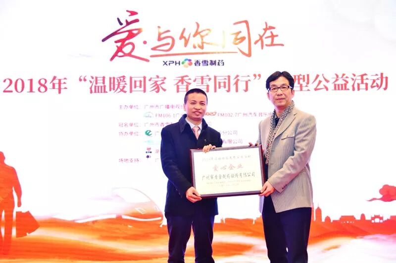 2018年“温暖回家 香雪同行”大型公益活动启动仪式今日在广州举行,广州广电传媒集团经营中心总经理、广州交通电台总监黄建伟、广州汽车音乐电台总监招卓宁、广州市香雪制药股份有限公司制药事业部总经理谭光华等出席了本次活动,活动还对爱心企业进行了颁奖。