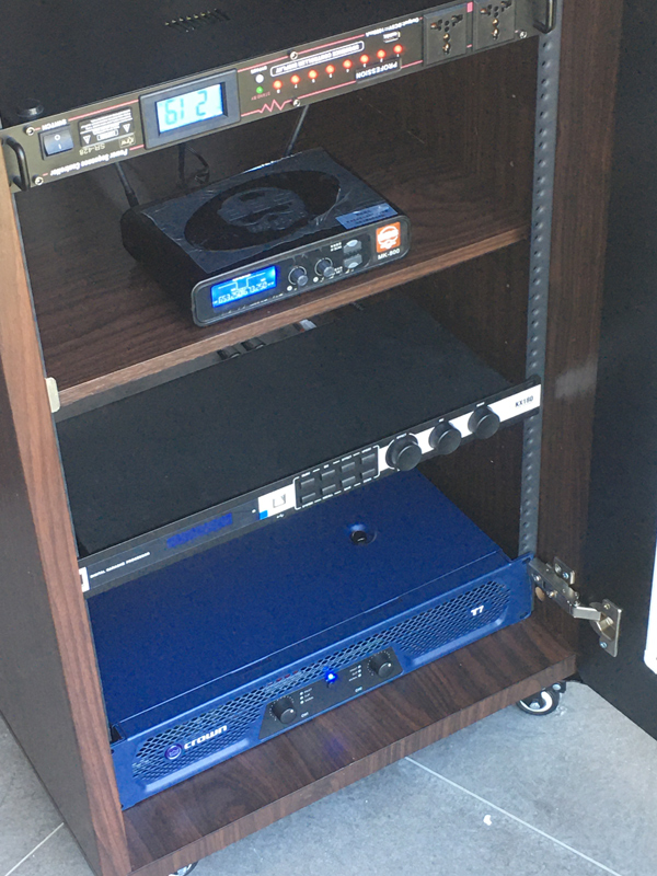 数字效果器同样采用的是JBL的设备,KX180负责音量、滤波、压限、延时、回声、混响等音效调节。