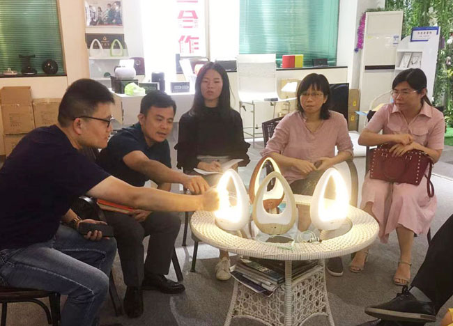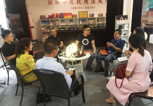 2019年11月4日,广东省外语艺术职业学院(龙洞校区)广东省对外贸易职业技术学校电商部部长邓卓建及电商部的优秀教师们来到校区内的广州阿隆索智能科技有限公司,与阿隆索公司的产品部、营销部的员工们一起探讨校企合作中的产品创新创意发展方向,阿隆索公司总经理冷亚伟先生热情介绍了公司在新品创新开发方面的一些举措和思路,并将最新推出的系列产品拿出来与电商部的老师们一起探讨。