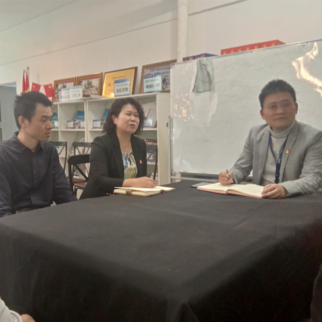 家商城总经理冷亚伟对彭月嫦部长一行表示热情欢迎,并饱含深情的说到,家商城党支部2013年10月28日成立,2019年,公司党支部被评为“中共广州市天河区星级党支部”,作为党的基层组织,家商城一贯高度重视教育,现有员工100%都受过高等教育,为家商城的不断发展提供了源源动力,这让我们深知教育的重要性。教育促进了家商城的发展,家商城也一定会反哺教育,2021年全国“两会”政府工作报告明确提出“增强职业教育适应性,深化产教融合、校企合作”,家商城必将为深化校企合作不断添砖加瓦。